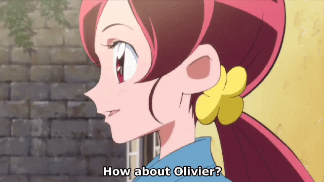 more plot happens, but the gist is this: olivier returns to his father, giving him the crystal back. however, now motivated due to the friendships he's made with tsubomi and everyone else, fights with the baron, begging him not to destroy the world.unfortunately, a full moon hits, and olivier's powers go out of control. taking advantage of this, the baron uses his wand and his magic to TURN INTO A HUGE DRAGON. I KNOW. and destroy paris. the precures obviously head over to stop them.cure blossom/tsubomi is able to reach the overwhelmed olivier, who had been lashing out and attacking both her and cure marine. by speaking out to him and comforting him, olivier calms down, his powers now under control. together, they go together to stop his dad from destroying everything basically. yipee.